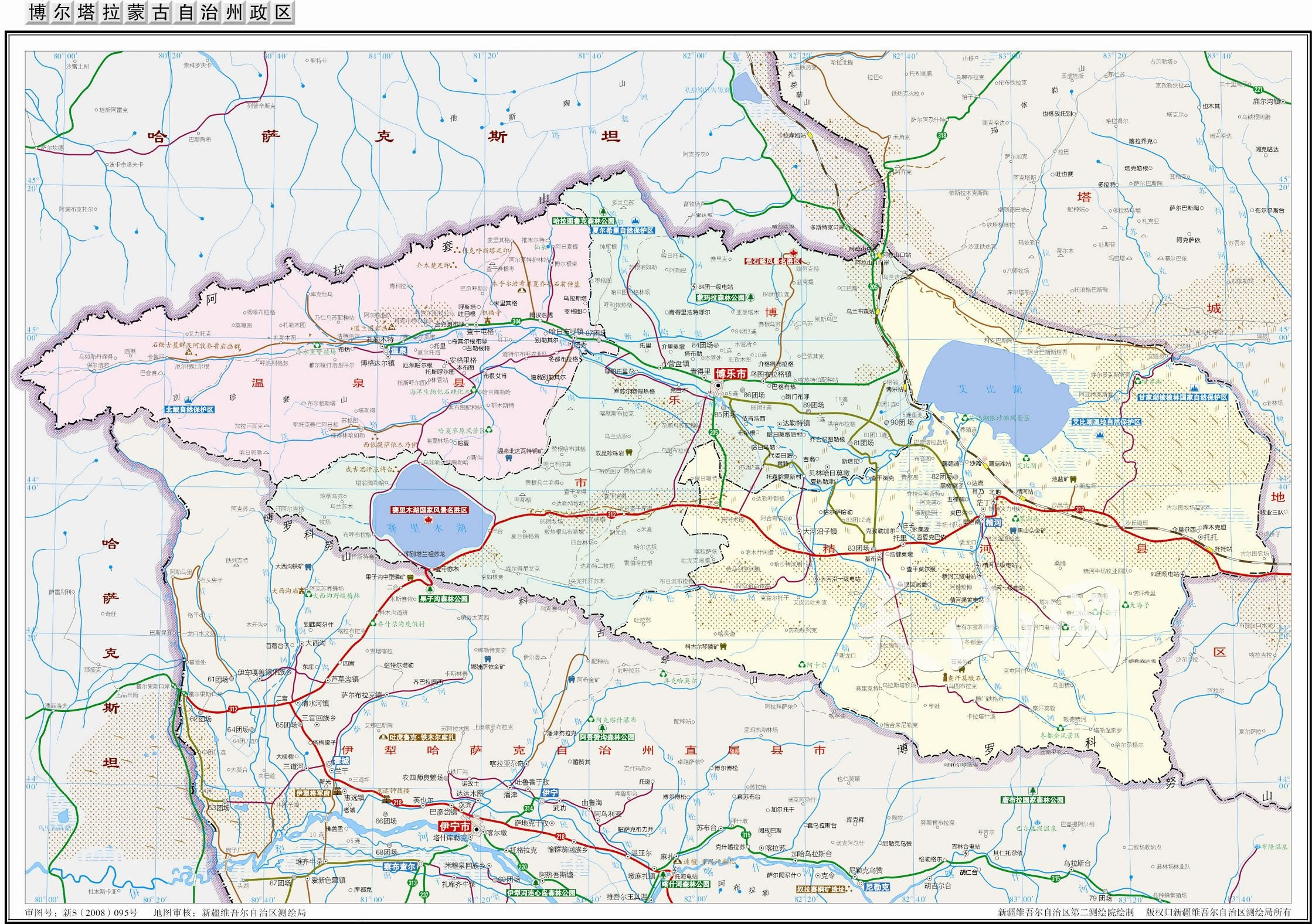 博爾塔拉蒙古自治州轄2個(gè)縣級市、2個(gè)縣: