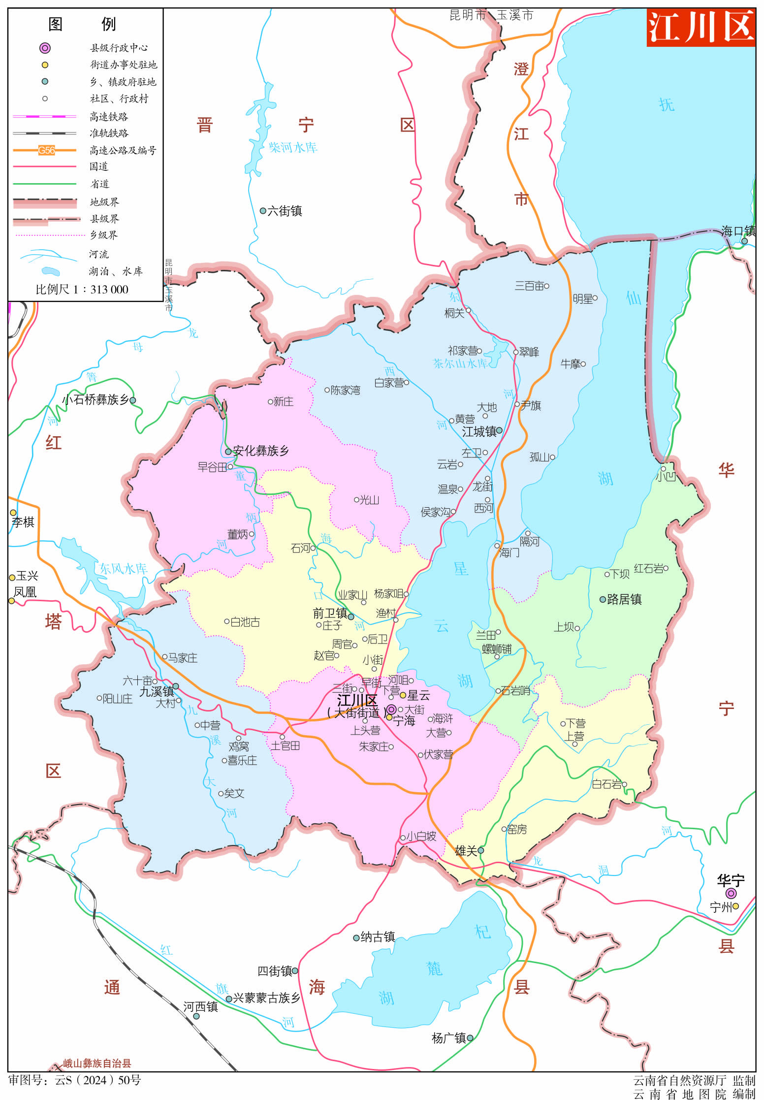 玉溪市江川區(qū)地圖