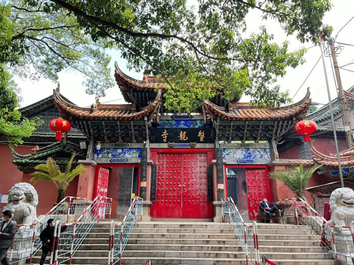 盤龍寺,位于滇池東岸盤龍山,距晉城鎮(zhèn)東南3千米,距昆明市區(qū)約40千米,是云南著名的佛教圣地之一。盤龍山方圓數(shù)十里,群山環(huán)抱、松濤萬(wàn)頃,主峰巍峨聳立、中峰突起,史稱盤龍,盤龍寺由此得名。盤龍寺建于元朝至正七年(1347年),明初又繼續(xù)擴(kuò)建寺院,初具規(guī)模。歷代文人在盤龍寺留下了許多詩(shī)詞書畫、楹聯(lián)、橫匾和碑銘等,其中以元梁王、明朝永歷帝和徐霞客等名人的手跡較為珍貴。1983年,盤龍寺被列為昆明市重點(diǎn)文物保護(hù)單位。