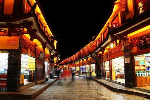 麗江古城是滇西北主要的商品集散地和手工藝品產(chǎn)地,因此,西南各地的特產(chǎn)在麗江均可買到。在麗江古城中心有一塊近6畝地的方形街市,四周均是整齊的店鋪,俗稱“四方街”,是麗江最具傳統(tǒng)的購物集市。