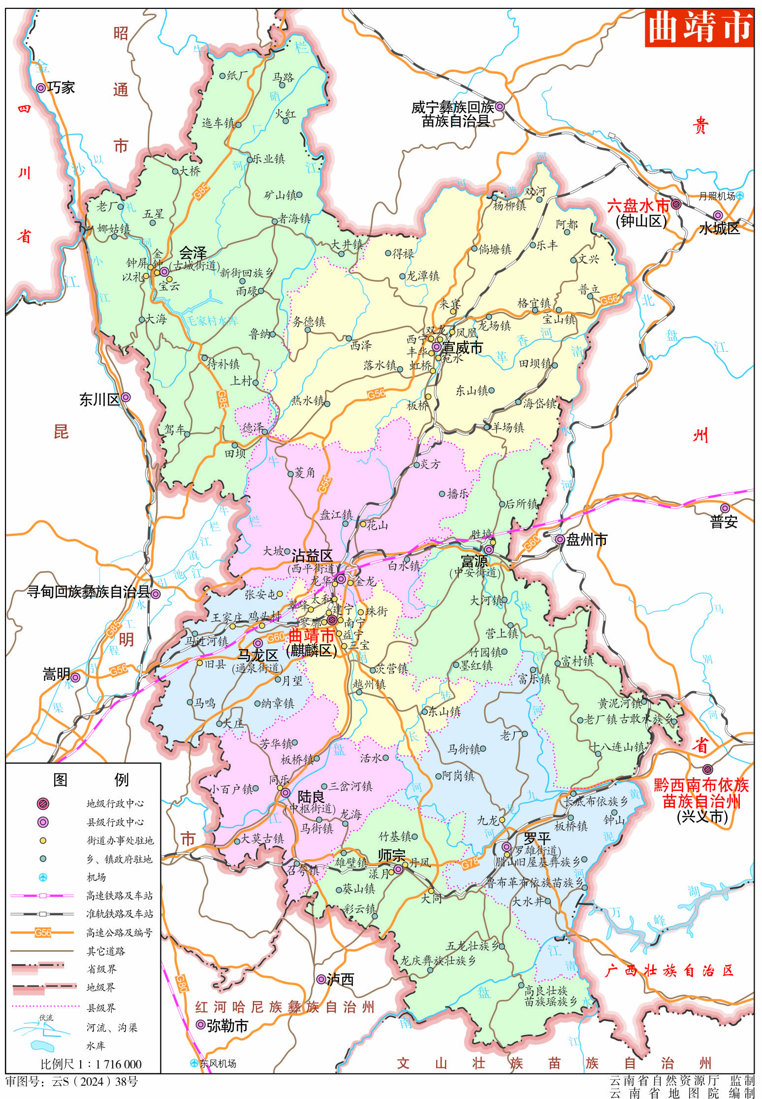 曲靖市轄3個(gè)區(qū)、5個(gè)縣、1個(gè)縣級市: