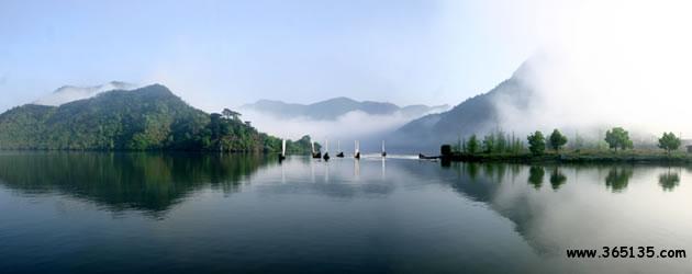 仙宮湖:崛立在云和縣緊水灘的浙南第一壩緊水灘水電站大壩,將滔滔甌江攔腰鎖住。在水電站建成的同時,浙南的茫茫林海中奇跡般地出現(xiàn)了一個巨大的人工湖緊水灘庫湖。1993年8月9日經(jīng)地區(qū)行署批準(zhǔn),改名為仙宮湖。放眼全湖,碧波蕩漾,晶瑩似鏡,周圍千姿百態(tài)的奇巖異峰、浩如煙海松濤,點綴湖邊的村莊、田野和山林,好似一幅色彩斑斕,絢麗多姿的山水畫。這里廣闊的湖面,煙波浩渺,水山相連,望不盡頭。與千島湖相比,雖無“千島”之態(tài)。但湖中島嶼正在一個個形成。隨著蓄水位的漸漸增高,將會出現(xiàn)更多“湖心之島”。那晶瑩澄碧的湖水在陽光的照射下,閃著瀲滟的波光,似一顆閃眼的明珠,鑲嵌在群山峻嶺之中。湖兩旁的松杉。翠竹掩映于湖唇,好似繡上一道花邊,君若泛舟湖中,其可謂“人行明鏡中”了。倘若天氣作變,更給景色增添妙異的變幻。晴天,頭上藍天萬里,腳下碧波千頃,點點白帆移動,轟轟船只掠過,舉目望去,山水一色;回首顧盼,卻置身于綠水青山之中。雨天,霧靄茫茫,層林碧水連成一片,人在湖面,有身置云霧瓊樓仙境之感。尤其在赤石、龍門一帶,水域?qū)掗,島嶼列布,湖區(qū)四周還有“九潭十八灣”、“夏洞天”、“龍老洞”、“蝴蝶洞”、“牛頭山”等勝景。仙宮湖不愧為特具魅力的旅游勝地。